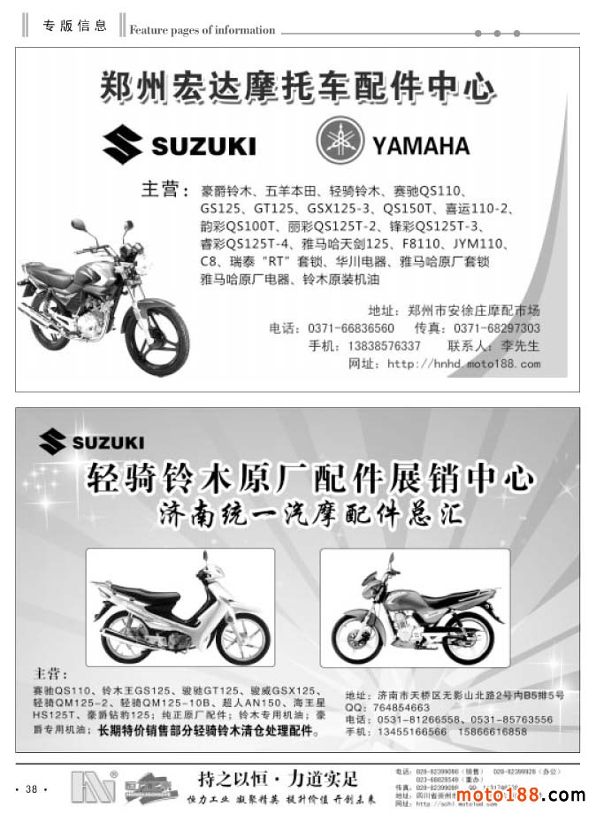 在這個淡季里,我們還將去西北和東北送書、送報上萬,走訪調(diào)研這些地區(qū)的市場。再次強(qiáng)調(diào),我們送的書是今年上半年在濟(jì)南全摩會首發(fā)的新版《中國摩托車配件生產(chǎn)企業(yè)大全》,送的報紙是《摩托車與配件外貿(mào)報》。我們的雜志還是由全國各發(fā)行點(diǎn)直接發(fā)放給市場上的經(jīng)營商戶。目前《大全》已完成在山東、河北、廣東和重慶等省市的主要市場的發(fā)行。今年年底之前完成對全國市場的投放。