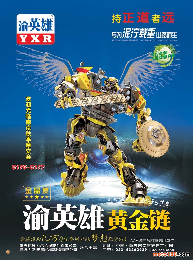 10月17日在重慶國(guó)際博覽中心舉辦全國(guó)摩托車(chē)博覽會(huì),我們雜志社也將參展,會(huì)議帶去部分《華東市場(chǎng)指南》及10月上半期的雜志。為了能趕在會(huì)議之前將雜志發(fā)到重慶,我們十月上、下的雜志都將提速,十月上除在重慶會(huì)議發(fā)送外還和十月下一起在南京全摩會(huì)上發(fā)放。這段時(shí)間,我們工作也較以往忙碌起來(lái),這之中還有今年《第四期外貿(mào)報(bào)》和《會(huì)刊》需要制作。在這金秋的收獲季節(jié),讓我們一起來(lái)收獲希望!