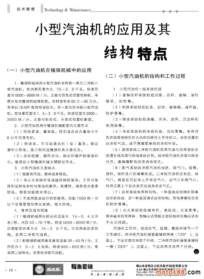 摩托車(chē)與配件》雜志為小型汽油機(jī)專(zhuān)輯,這似乎與摩托車(chē)配件不太相關(guān),但我們還是用心地去組織了與通機(jī)行業(yè)有關(guān)的技術(shù)、標(biāo)準(zhǔn)及資訊類(lèi)的文章。我們編纂這個(gè)專(zhuān)輯也是有以下各方面的原因:
