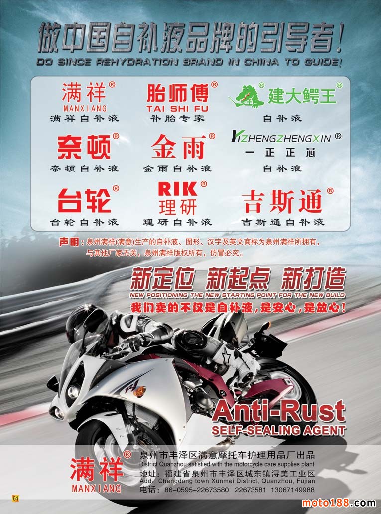 第三十三屆秋季全摩配也將于本月24-26日在南京國際會展中心召開,這是行業(yè)秋季大點兵。按照組委會的要求,大會的會刊將在本月15日抵達展館,所以也必須在國慶過后就得送去印刷。在今年秋季南京全摩會,我們還將為參會企業(yè)和觀展的經(jīng)銷商,贈送新版《華東市場指南》,由廣州工作站承制的《廣州市場導(dǎo)購指南》,今年第三期《摩托車與配件外貿(mào)報》,今年十月上、下期《摩托車與配件》雜志,以及部分庫存書——《中國摩托車配件生產(chǎn)企業(yè)大全》?!杜浼a(chǎn)企業(yè)大全》上半年在濟南首發(fā),目前除湖南、湖北及山西、廣西、河北部分市場沒有發(fā)放外,其余市場基本都是送書上門;還有部分省級市場由雜志發(fā)行點代理發(fā)送;沒有收到這本書的以及不在摩配市場的企業(yè)請到我們南京展位C89領(lǐng)取;還有《華南、三北、西南》三個市場的指南,也在會上發(fā)送。因為庫存的書不多,需要這些書的企業(yè)請盡量早去我們展位領(lǐng)取,送完即止。