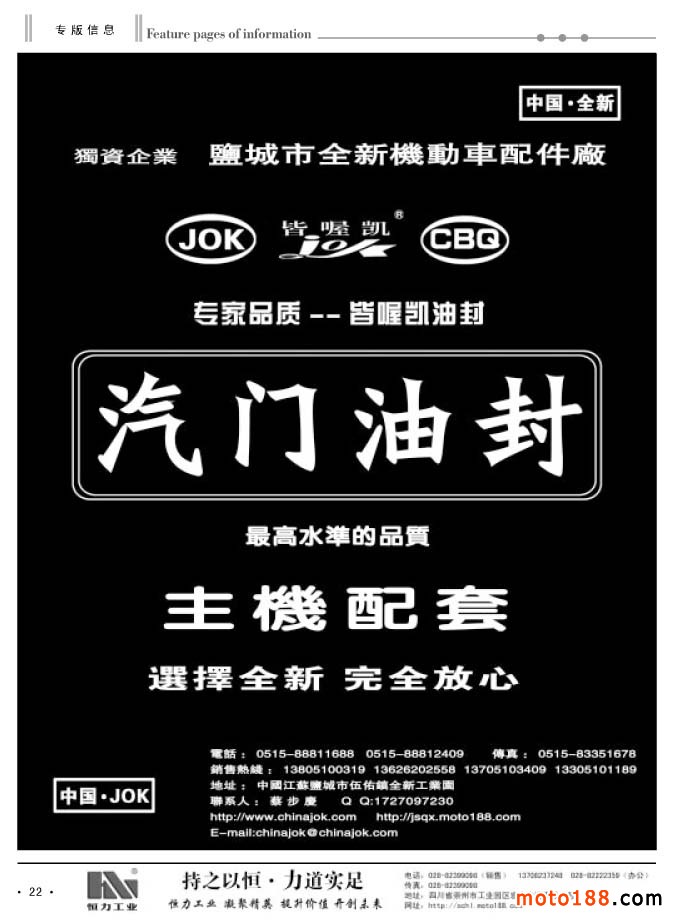 本次雜志因為要參加10月17-20日在重慶國際博覽中心舉辦的第十二屆中國國際摩托車博覽會,在這個展會上我們還將《中國摩托車配件華東市場指南》帶到會上發(fā)行,因而我們在過完中秋節(jié)后,工作就十分繁忙。為了能保證及時參展,我們都在趕點,這之中還包括國慶假日,印刷廠還要放假,江蘇到重慶的在途運輸時間等。為了兌現(xiàn)我們出版發(fā)行的承諾,我們也只有努力工作。
