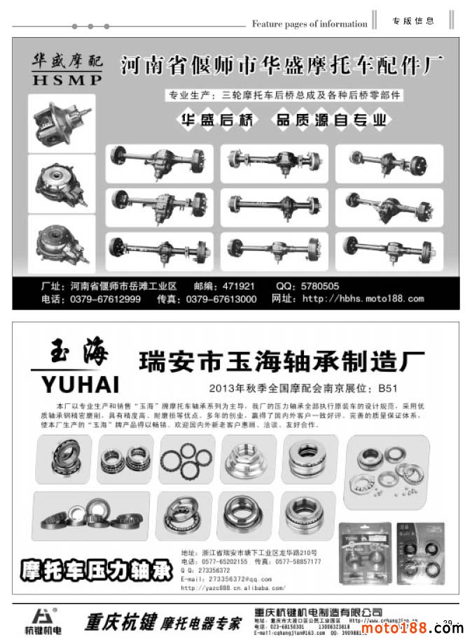 第三十三屆秋季全摩配也將于本月24-26日在南京國際會展中心召開,這是行業(yè)秋季大點兵。按照組委會的要求,大會的會刊將在本月15日抵達展館,所以也必須在國慶過后就得送去印刷。在今年秋季南京全摩會,我們還將為參會企業(yè)和觀展的經(jīng)銷商,贈送新版《華東市場指南》,由廣州工作站承制的《廣州市場導(dǎo)購指南》,今年第三期《摩托車與配件外貿(mào)報》,今年十月上、下期《摩托車與配件》雜志,以及部分庫存書——《中國摩托車配件生產(chǎn)企業(yè)大全》?!杜浼a(chǎn)企業(yè)大全》上半年在濟南首發(fā),目前除湖南、湖北及山西、廣西、河北部分市場沒有發(fā)放外,其余市場基本都是送書上門;還有部分省級市場由雜志發(fā)行點代理發(fā)送;沒有收到這本書的以及不在摩配市場的企業(yè)請到我們南京展位C89領(lǐng)??;還有《華南、三北、西南》三個市場的指南,也在會上發(fā)送。因為庫存的書不多,需要這些書的企業(yè)請盡量早去我們展位領(lǐng)取,送完即止。