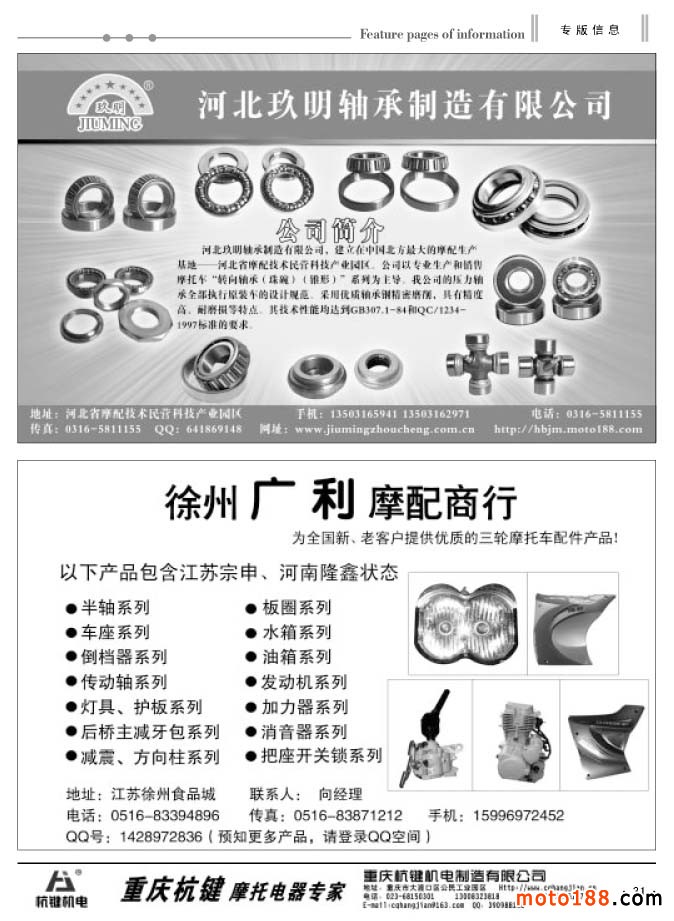 本次雜志因為要參加10月17-20日在重慶國際博覽中心舉辦的第十二屆中國國際摩托車博覽會,在這個展會上我們還將《中國摩托車配件華東市場指南》帶到會上發(fā)行,因而我們在過完中秋節(jié)后,工作就十分繁忙。為了能保證及時參展,我們都在趕點,這之中還包括國慶假日,印刷廠還要放假,江蘇到重慶的在途運輸時間等。為了兌現(xiàn)我們出版發(fā)行的承諾,我們也只有努力工作。