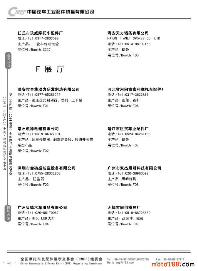 第33屆秋季(南京)全國摩托車及配件展示交易會(huì)參展企業(yè)名錄