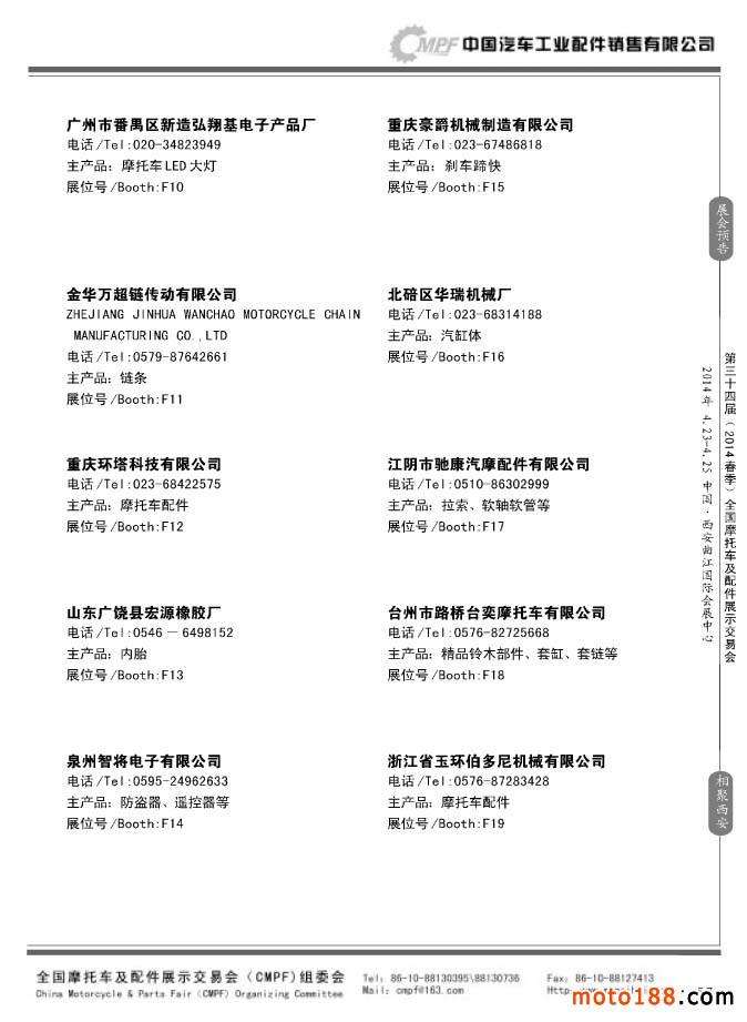 第33屆秋季(南京)全國摩托車及配件展示交易會(huì)參展企業(yè)名錄