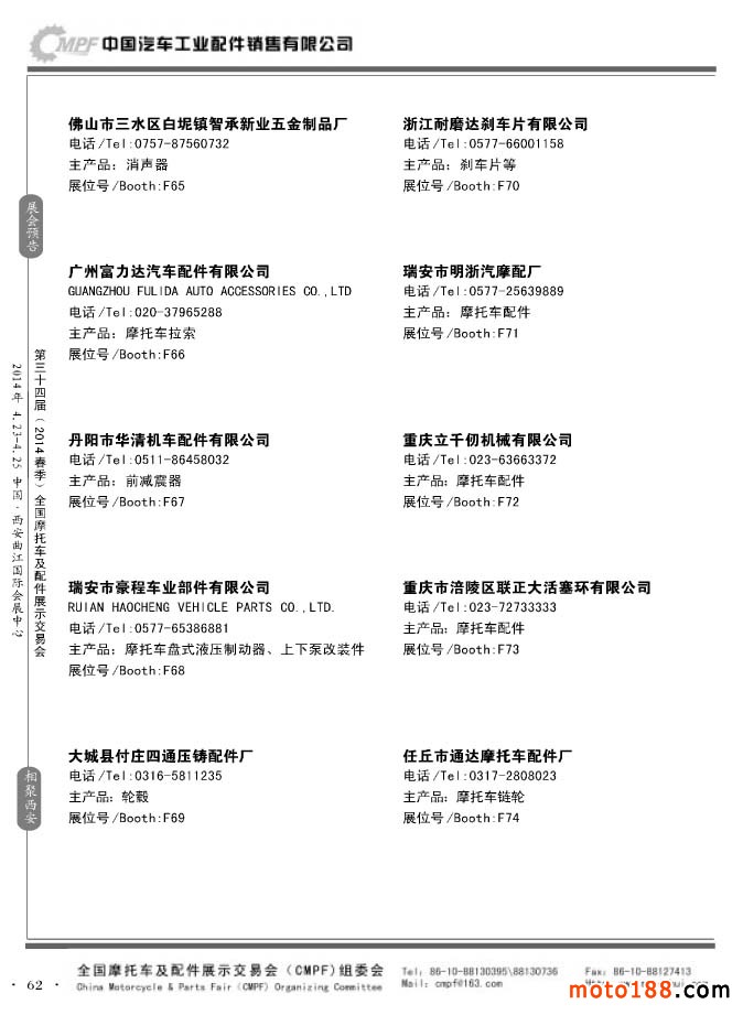 第33屆秋季(南京)全國摩托車及配件展示交易會(huì)參展企業(yè)名錄