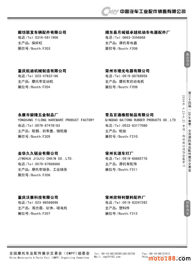 第33屆秋季(南京)全國摩托車及配件展示交易會(huì)參展企業(yè)名錄