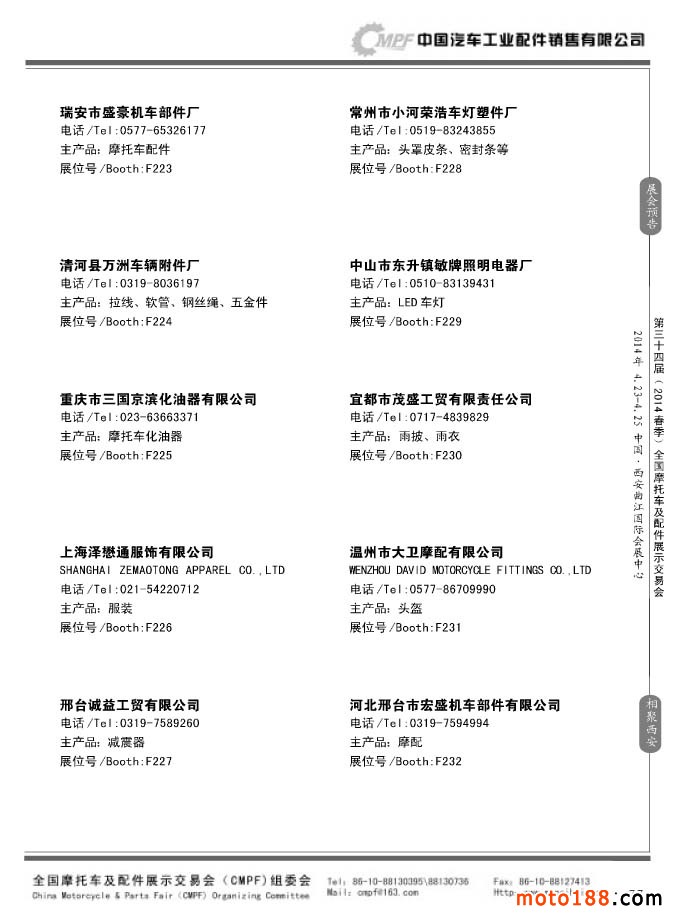 第33屆秋季(南京)全國摩托車及配件展示交易會參展企業(yè)名錄