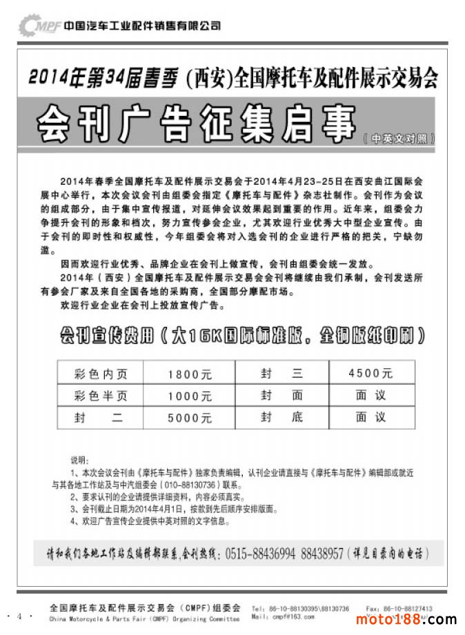 2014年第34屆春季(西安)全摩會會刊征集啟事