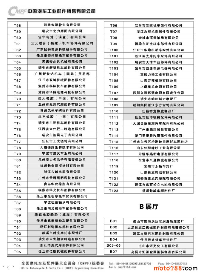 第33屆秋季(南京)全國(guó)摩托車及配件展示交易會(huì)參展單位名錄