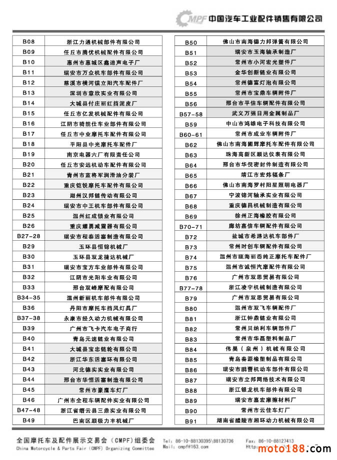 第33屆秋季(南京)全國(guó)摩托車及配件展示交易會(huì)參展單位名錄