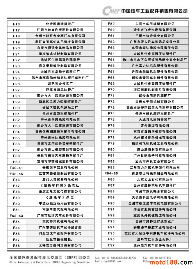 第33屆秋季(南京)全國摩托車及配件展示交易會參展單位名錄