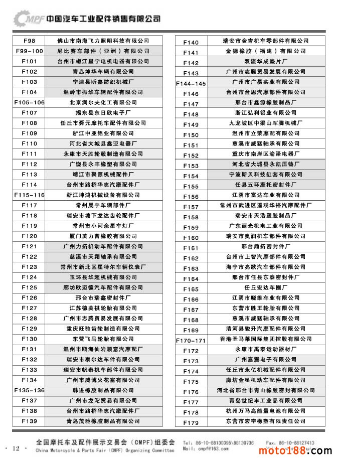 第33屆秋季(南京)全國摩托車及配件展示交易會參展單位名錄