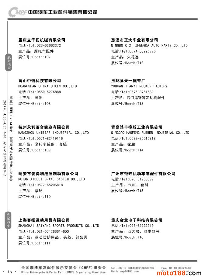 第33屆秋季(南京)全國摩托車及配件展示交易會參展企業(yè)名錄
