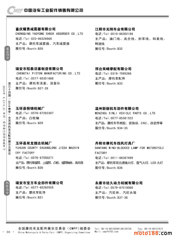 第33屆秋季(南京)全國摩托車及配件展示交易會(huì)參展企業(yè)名錄