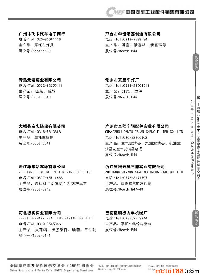 第33屆秋季(南京)全國摩托車及配件展示交易會參展企業(yè)名錄
