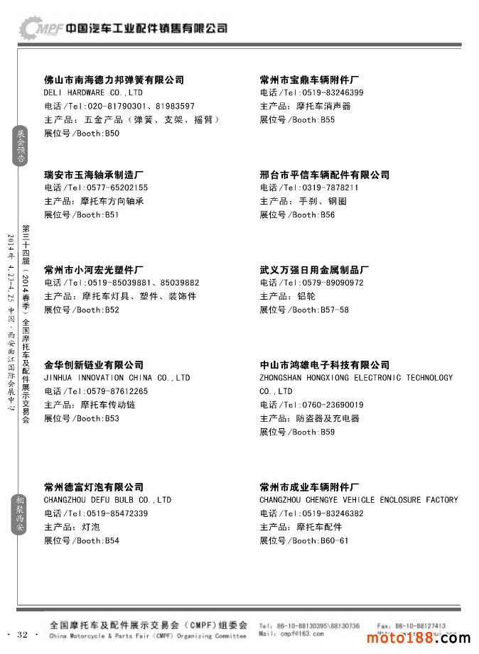 第33屆秋季(南京)全國摩托車及配件展示交易會(huì)參展企業(yè)名錄