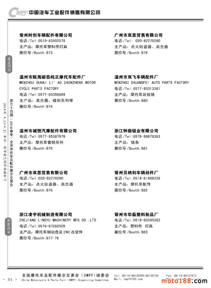 第33屆秋季(南京)全國摩托車及配件展示交易會(huì)參展企業(yè)名錄