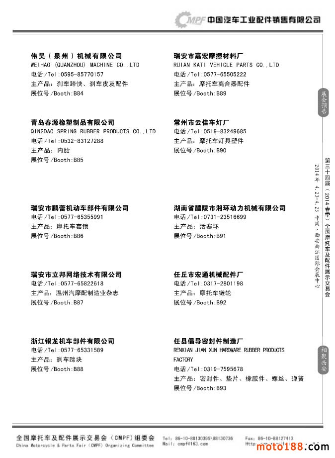 第33屆秋季(南京)全國摩托車及配件展示交易會參展企業(yè)名錄