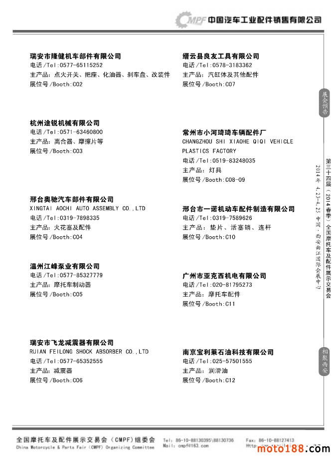第33屆秋季(南京)全國摩托車及配件展示交易會參展企業(yè)名錄