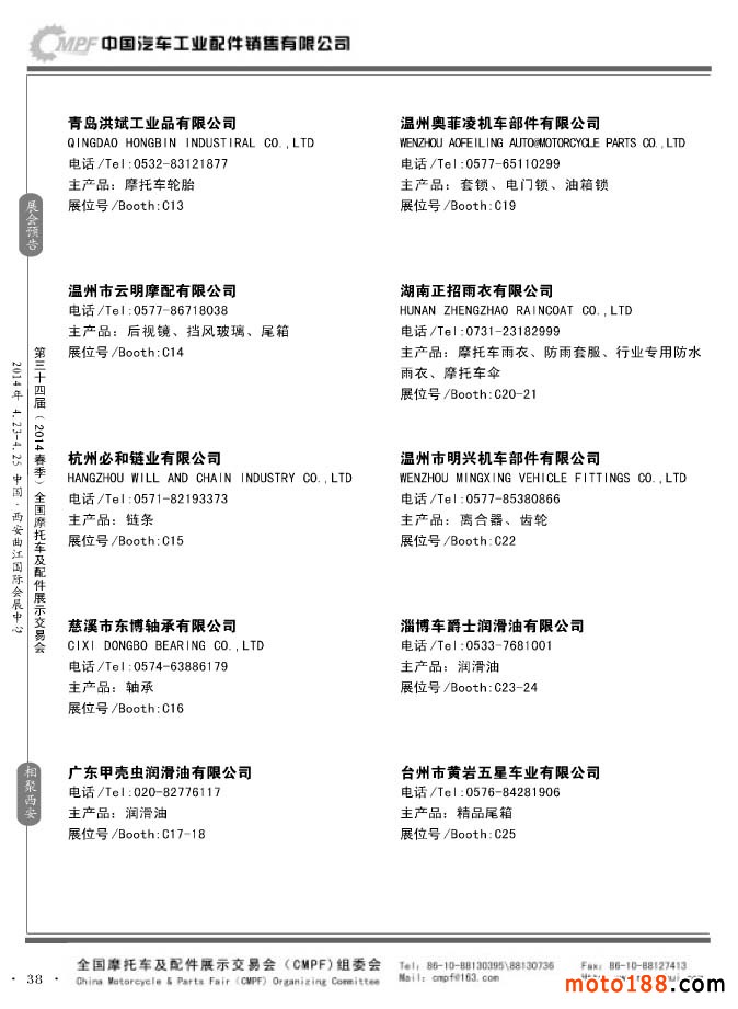 第33屆秋季(南京)全國(guó)摩托車及配件展示交易會(huì)參展企業(yè)名錄