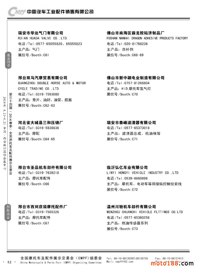 第33屆秋季(南京)全國(guó)摩托車及配件展示交易會(huì)參展企業(yè)名錄