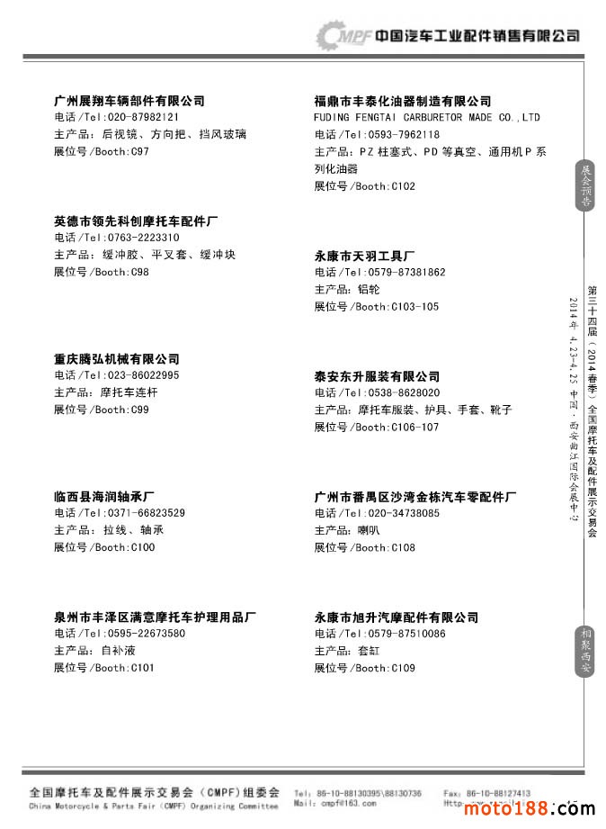 第33屆秋季(南京)全國摩托車及配件展示交易會參展企業(yè)名錄