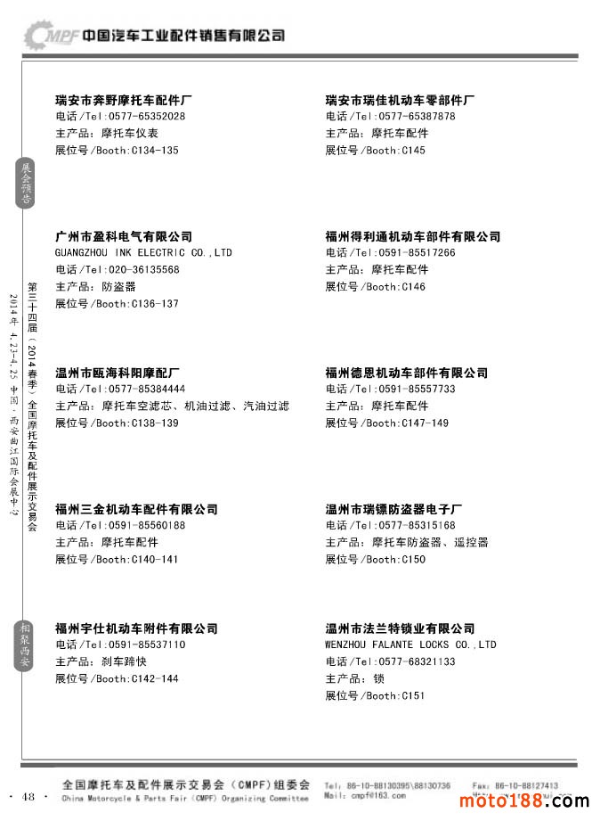 第33屆秋季(南京)全國摩托車及配件展示交易會參展企業(yè)名錄