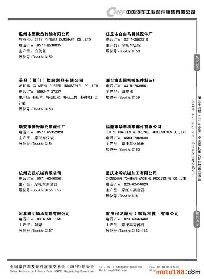 第33屆秋季(南京)全國(guó)摩托車(chē)及配件展示交易會(huì)參展企業(yè)名錄