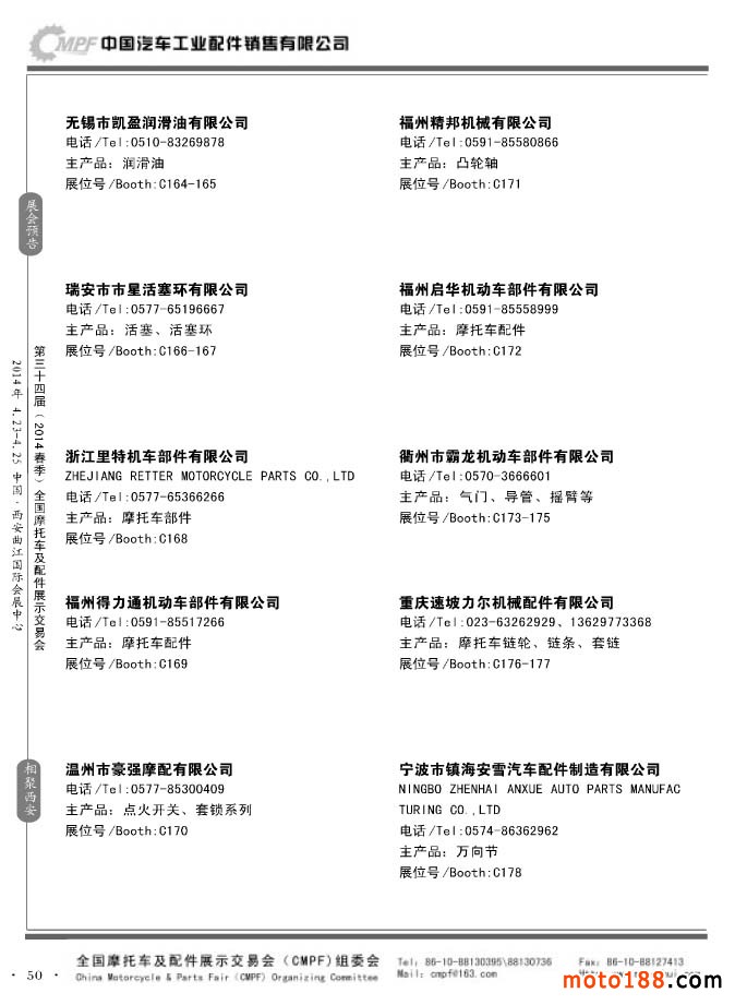 第33屆秋季(南京)全國(guó)摩托車(chē)及配件展示交易會(huì)參展企業(yè)名錄