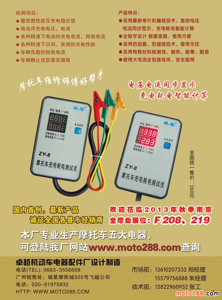 同時還有今年新編的第四期《中國摩托車配件外貿(mào)報》,本報除在省會市場發(fā)行之外,在廣州和重慶的市場都設(shè)有報架,讓客戶隨手取閱。本次報紙和雜志將會一起派送。今年的全摩會《會刊》仍然由中汽組委會派發(fā),在進門口領(lǐng)參展證的同時,領(lǐng)取《會刊》,我們只負責制作,組委會負責發(fā)行。