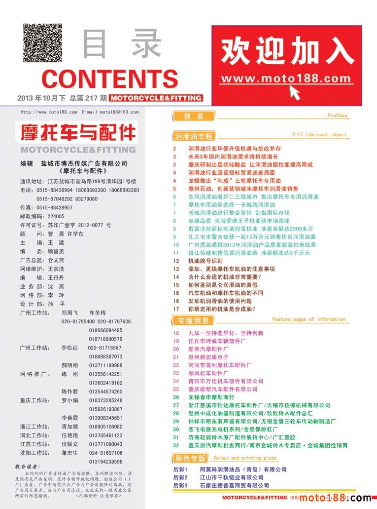 隨著秋季全摩會(huì)的召開(kāi),行業(yè)也進(jìn)入到收宮之戰(zhàn)。我們雜志也在謀兵布局于明年,初步打算,明年雜志采用全彩色印刷;雜志還以月刊出版,即一月一期。今年做了增刊的嘗試,上半年雜志較薄,下半年明顯厚實(shí)了,但我們還是尊重行業(yè)大部分人的意見(jiàn),調(diào)整為月刊。會(huì)上我們也希望大家多提建設(shè)性的改進(jìn)意見(jiàn),把行業(yè)碩果僅存的雜志做得更好。目前我們?cè)谛袠I(yè)沒(méi)有參照的樣板,我們只有摸索著石頭過(guò)河。在今年行業(yè)大環(huán)境不好的狀況下,我們的雜志增加了行業(yè)產(chǎn)業(yè)延伸的專題報(bào)道,如:小型通機(jī)、三輪摩托車(chē)等。希望企業(yè)能在這些信息中,發(fā)現(xiàn)新的商機(jī),走創(chuàng)新發(fā)展之路,為企業(yè)爭(zhēng)取更多的發(fā)展空間。