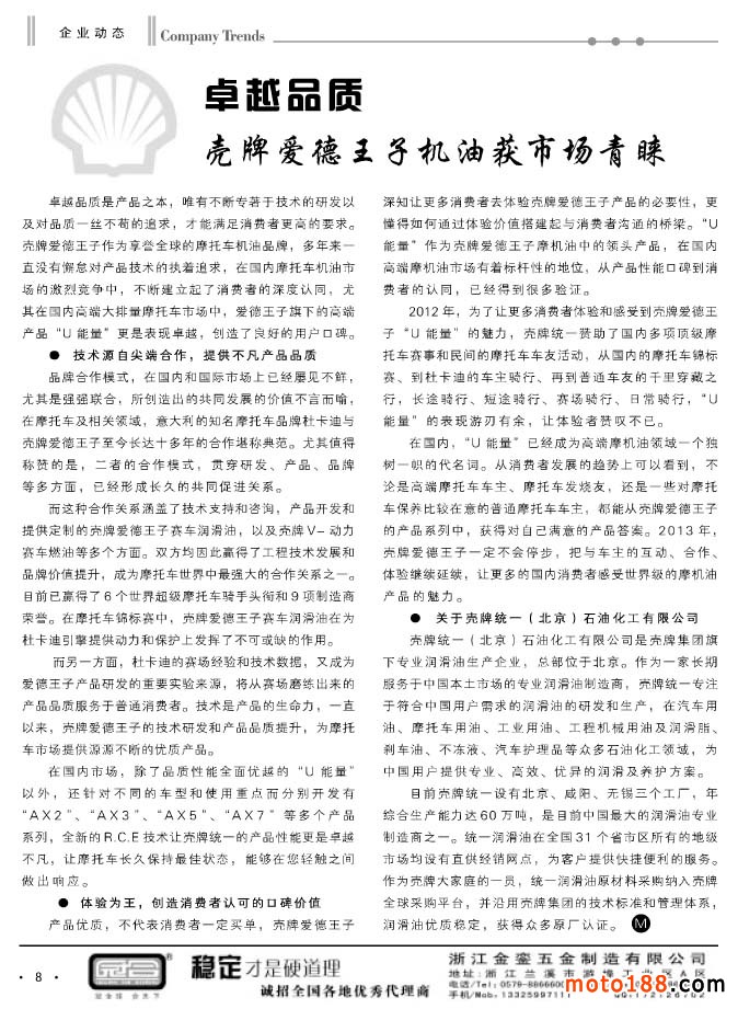 隨著秋季全摩會的召開,行業(yè)也進入到收宮之戰(zhàn)。我們雜志也在謀兵布局于明年,初步打算,明年雜志采用全彩色印刷;雜志還以月刊出版,即一月一期。今年做了增刊的嘗試,上半年雜志較薄,下半年明顯厚實了,但我們還是尊重行業(yè)大部分人的意見,調(diào)整為月刊。會上我們也希望大家多提建設(shè)性的改進意見,把行業(yè)碩果僅存的雜志做得更好。目前我們在行業(yè)沒有參照的樣板,我們只有摸索著石頭過河。在今年行業(yè)大環(huán)境不好的狀況下,我們的雜志增加了行業(yè)產(chǎn)業(yè)延伸的專題報道,如:小型通機、三輪摩托車等。希望企業(yè)能在這些信息中,發(fā)現(xiàn)新的商機,走創(chuàng)新發(fā)展之路,為企業(yè)爭取更多的發(fā)展空間。