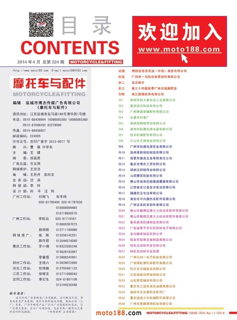 全摩會(huì)后,我們的工作是每月出一本雜志,同時(shí)編新版《華南市場指南》、第十二次《中國摩托車配件生產(chǎn)企業(yè)大全》升級版,在十一月份廣州會(huì)議上首發(fā)這兩本書。下半年廣州再見!