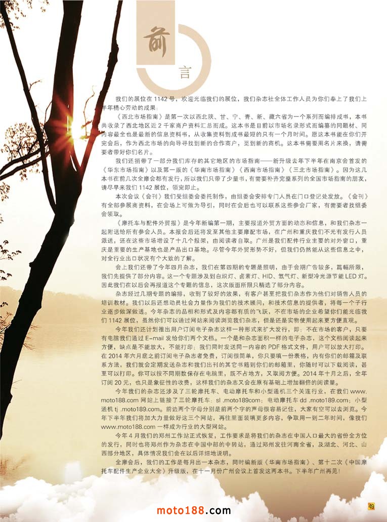 全摩會(huì)后,我們的工作是每月出一本雜志,同時(shí)編新版《華南市場指南》、第十二次《中國摩托車配件生產(chǎn)企業(yè)大全》升級(jí)版,在十一月份廣州會(huì)議上首發(fā)這兩本書。下半年廣州再見!