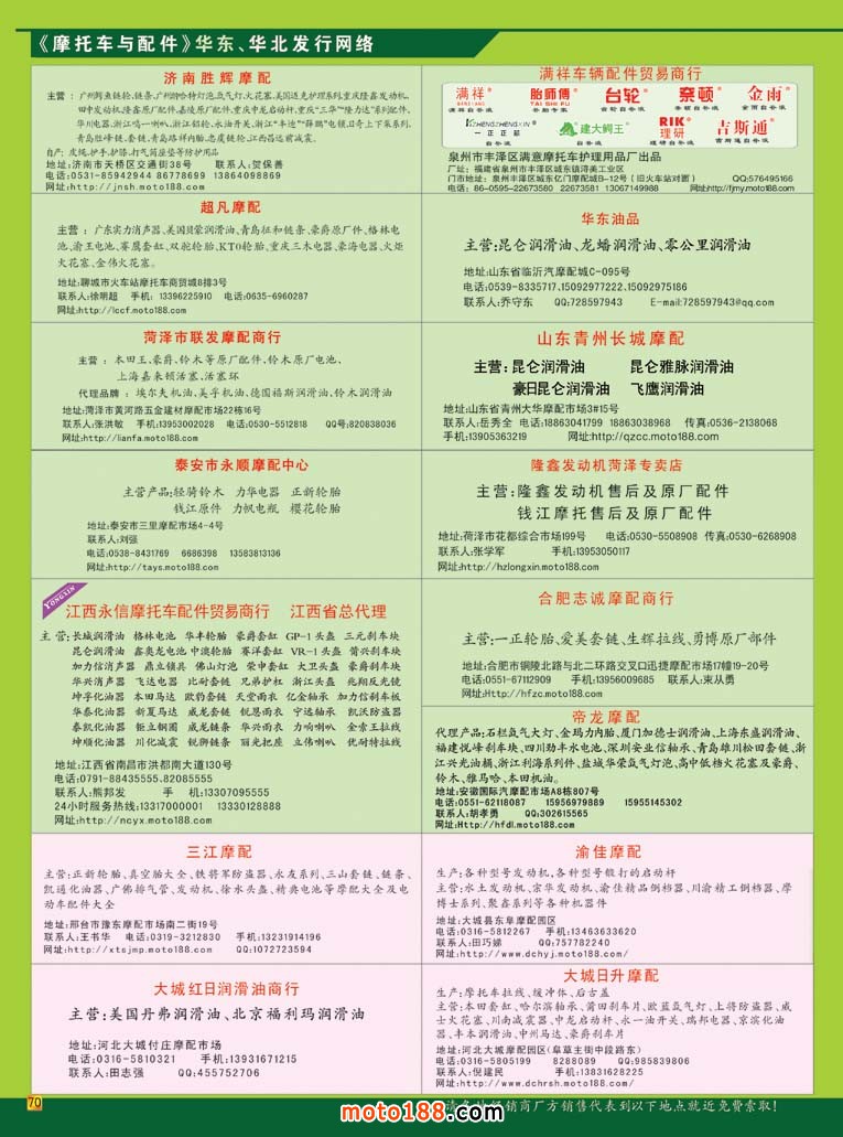 全摩會(huì)后,我們的工作是每月出一本雜志,同時(shí)編新版《華南市場指南》、第十二次《中國摩托車配件生產(chǎn)企業(yè)大全》升級(jí)版,在十一月份廣州會(huì)議上首發(fā)這兩本書。下半年廣州再見!