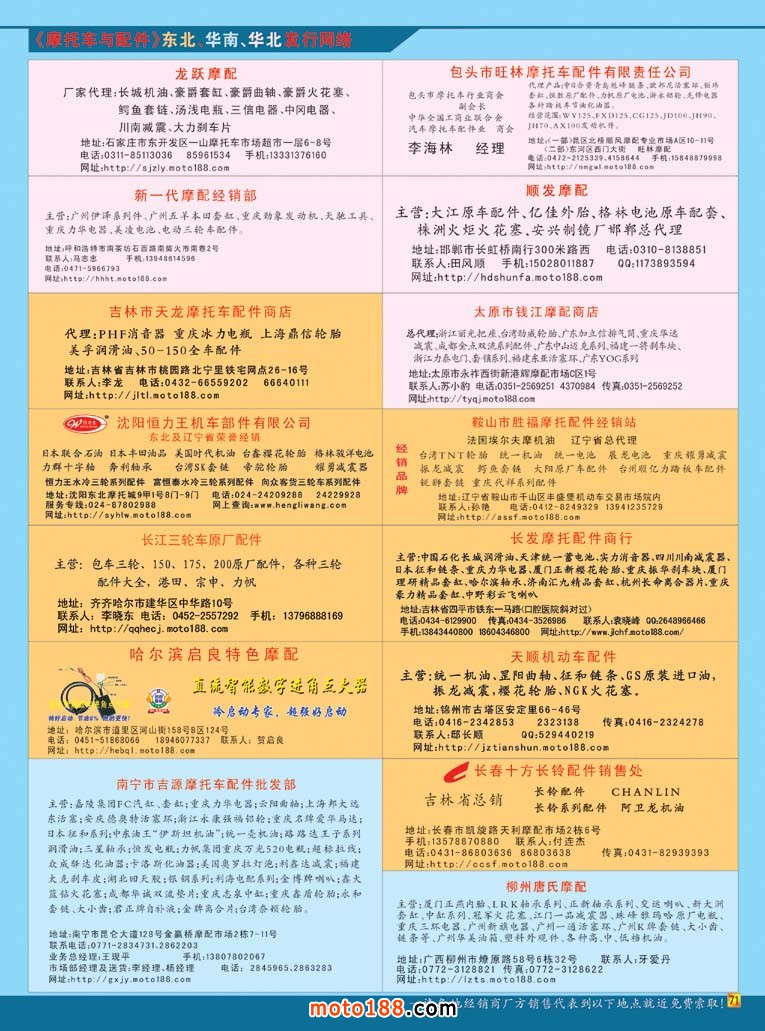 全摩會后,我們的工作是每月出一本雜志,同時編新版《華南市場指南》、第十二次《中國摩托車配件生產(chǎn)企業(yè)大全》升級版,在十一月份廣州會議上首發(fā)這兩本書。下半年廣州再見!