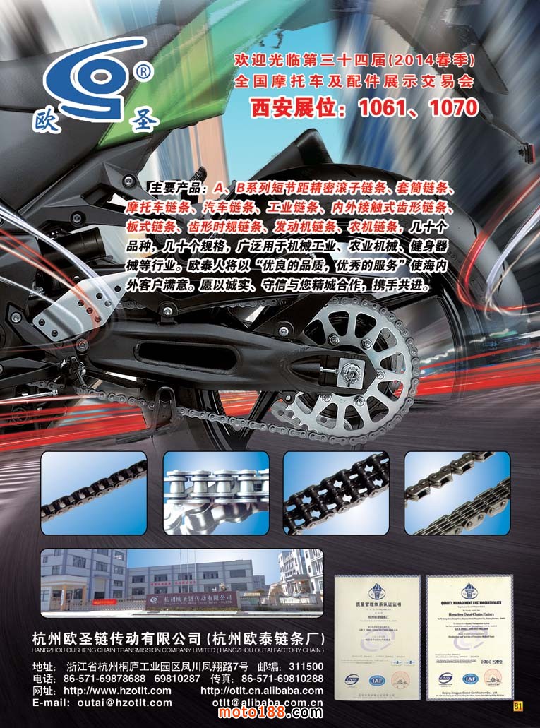 今年我們的雜志還涉及了三輪摩托車、電動(dòng)摩托車和小型通機(jī)三個(gè)關(guān)連行業(yè),在我們www.vogueauto.cn網(wǎng)站上鏈接了三輪摩托車:sl .moto189com;電動(dòng)摩托車dd .moto189.com;小型通機(jī)tj .moto189.com。前邊兩個(gè)字母分別是前兩個(gè)字的聲母很容易記住,大家有空可以去瀏覽。今年下半年我們將加大力量做好這三個(gè)網(wǎng)站,再往里面裝填更多內(nèi)容,爭取用一到二年時(shí)間,像我們 www.vogueauto.cn一樣成為行業(yè)的大型網(wǎng)站。