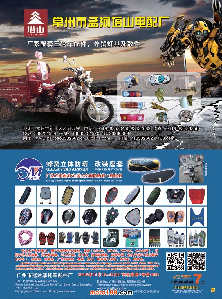 《摩托車與配件》的外延已經(jīng)展開,涉及到我們配件行業(yè)的相關(guān)企業(yè)。通過我們對中南地區(qū)及華東市場的走訪,我們更加感覺我們調(diào)整的及時(shí),緊貼市場。目前摩托車行業(yè)在華東地區(qū)變化非常大,有昨日黃花之感覺,一些我們以前了解的大戶,曾經(jīng)門庭若市,現(xiàn)在卻門庭冷落車馬稀,有的不堪門面費(fèi)用,已轉(zhuǎn)到倉儲用大篷車送貨銷售。相比而言,中南地區(qū)市場變化不算大,在經(jīng)營數(shù)量上還略有增加。摩托車整車市場變化超過了我們配件市場,除了摩托車整車十大品牌還依然屹立,一些小品牌在市場已經(jīng)很少能看見。這些撤走的小品牌車的門店,變成了電動(dòng)車和三輪車的門面了,有的甚至是電動(dòng)四輪車。一些企業(yè)稱這些車是新能源汽車,能源肯定是新的,但是作為汽車也稍微寒磣了一點(diǎn)吧。盡管如此,有的地區(qū)已經(jīng)呈現(xiàn)出將要成市的勢頭,但愿這類車在二三線城市不要遭受摩托車的命運(yùn)。