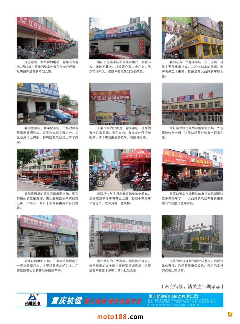 我們雜志在五月份對(duì)版面進(jìn)行了微調(diào),摩托車、電動(dòng)車、通機(jī)等按一定的比例選材編排《摩托車與配件》的外延已經(jīng)展開,涉及到我們配件行業(yè)的相關(guān)企業(yè)。通過(guò)我們對(duì)中南地區(qū)及華東市場(chǎng)的走訪,我們更加感覺(jué)我們調(diào)整的及時(shí),緊貼市場(chǎng)。目前摩托車行業(yè)在華東地區(qū)變化非常大,有昨日黃花之感覺(jué),一些我們以前了解的大戶,曾經(jīng)門庭若市,現(xiàn)在卻門庭冷落車馬稀,有的不堪門面費(fèi)用,已轉(zhuǎn)到倉(cāng)儲(chǔ)用大篷車送貨銷售。相比而言,中南地區(qū)市場(chǎng)變化不算大,在經(jīng)營(yíng)數(shù)量上還略有增加。摩托車整車市場(chǎng)變化超過(guò)了我們配件市場(chǎng),除了摩托車整車十大品牌還依然屹立,一些小品牌在市場(chǎng)已經(jīng)很少能看見。這些撤走的小品牌車的門店,變成了電動(dòng)車和三輪車的門面了,有的甚至是電動(dòng)四輪車。一些企業(yè)稱這些車是新能源汽車,能源肯定是新的,但是作為汽車也稍微寒磣了一點(diǎn)吧。盡管如此,有的地區(qū)已經(jīng)呈現(xiàn)出將要成市的勢(shì)頭,但愿這類車在二三線城市不要遭受摩托車的命運(yùn)。