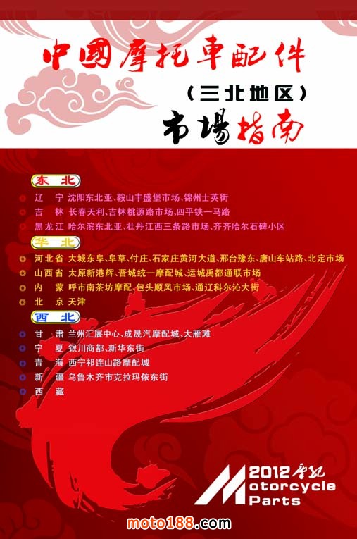2012年春,行業(yè)最具影響力的“春季全摩會”4月27日在重慶召開,我們將在特殊的時間,特 殊的地域,特殊的市場,推出獨具特色的《中國摩托車配件·西南市場指南》,為您的經(jīng)營提供方向,為您的騰飛插上翅膀。