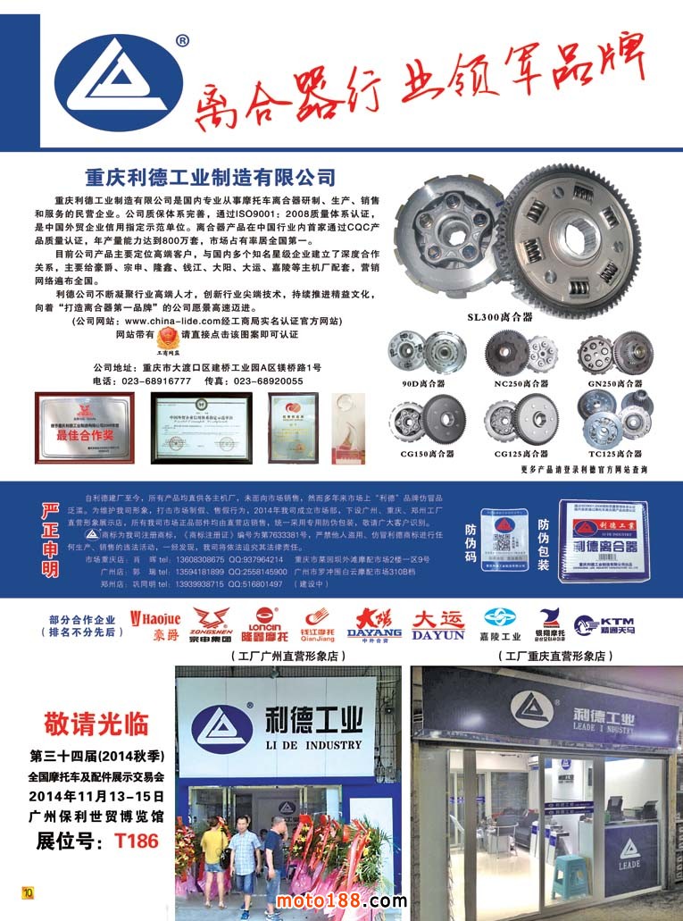 全摩會(huì)還有2個(gè)多月就在廣州召開了,這次會(huì)上我們將奉獻(xiàn)給大家的是第12次升級(jí)的《中國摩托車配件生產(chǎn)企業(yè)大全》在這本書中。我們新增了目錄銷售排名前10-20名的摩托車整車生產(chǎn)企業(yè),二輪電動(dòng)車生產(chǎn)企業(yè)、燃油和電動(dòng)三輪生產(chǎn)企業(yè)的名錄,方便大家在增加經(jīng)營的同時(shí),有所選擇和參考。《華南市場(chǎng)指南》含廣東和海南兩省市場(chǎng)經(jīng)銷商戶的資料,其中的廣州白云區(qū)羅沖圍一帶的市場(chǎng)是用中英文雙語編排,方便外商的閱讀;其余例行的十一期雜志和外貿(mào)報(bào)紙;另外還有部分華東和西北地區(qū)的新的市場(chǎng)指南(已經(jīng)在南京和西安會(huì)議首發(fā))。如果有興趣從事新能源汽車業(yè)務(wù)的企業(yè)也可拿到《新能源車》雜志。這是我們新出的雜志,具體可去moto189網(wǎng)站上瀏覽到全部的內(nèi)容,在此不多贅述。記住廣州再見,帶上你的名片到1075展位領(lǐng)書去!