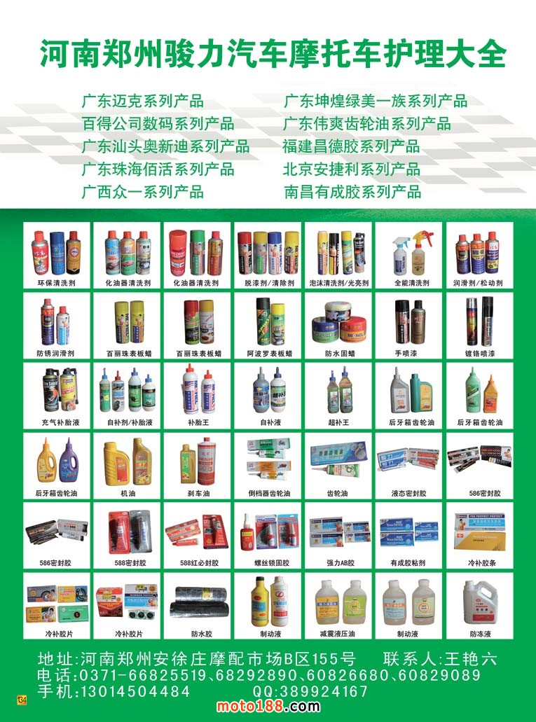 全摩會還有2個多月就在廣州召開了,這次會上我們將奉獻給大家的是第12次升級的《中國摩托車配件生產(chǎn)企業(yè)大全》在這本書中。我們新增了目錄銷售排名前10-20名的摩托車整車生產(chǎn)企業(yè),二輪電動車生產(chǎn)企業(yè)、燃油和電動三輪生產(chǎn)企業(yè)的名錄,方便大家在增加經(jīng)營的同時,有所選擇和參考?!度A南市場指南》含廣東和海南兩省市場經(jīng)銷商戶的資料,其中的廣州白云區(qū)羅沖圍一帶的市場是用中英文雙語編排,方便外商的閱讀;其余例行的十一期雜志和外貿(mào)報紙;另外還有部分華東和西北地區(qū)的新的市場指南(已經(jīng)在南京和西安會議首發(fā))。如果有興趣從事新能源汽車業(yè)務(wù)的企業(yè)也可拿到《新能源車》雜志。這是我們新出的雜志,具體可去moto189網(wǎng)站上瀏覽到全部的內(nèi)容,在此不多贅述。記住廣州再見,帶上你的名片到1075展位領(lǐng)書去!