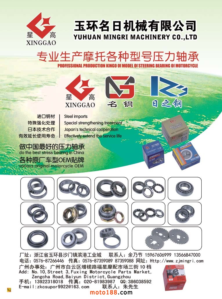 全摩會還有2個多月就在廣州召開了,這次會上我們將奉獻(xiàn)給大家的是第12次升級的《中國摩托車配件生產(chǎn)企業(yè)大全》在這本書中。我們新增了目錄銷售排名前10-20名的摩托車整車生產(chǎn)企業(yè),二輪電動車生產(chǎn)企業(yè)、燃油和電動三輪生產(chǎn)企業(yè)的名錄,方便大家在增加經(jīng)營的同時,有所選擇和參考?!度A南市場指南》含廣東和海南兩省市場經(jīng)銷商戶的資料,其中的廣州白云區(qū)羅沖圍一帶的市場是用中英文雙語編排,方便外商的閱讀;其余例行的十一期雜志和外貿(mào)報紙;另外還有部分華東和西北地區(qū)的新的市場指南(已經(jīng)在南京和西安會議首發(fā))。如果有興趣從事新能源汽車業(yè)務(wù)的企業(yè)也可拿到《新能源車》雜志。這是我們新出的雜志,具體可去moto189網(wǎng)站上瀏覽到全部的內(nèi)容,在此不多贅述。記住廣州再見,帶上你的名片到1075展位領(lǐng)書去!