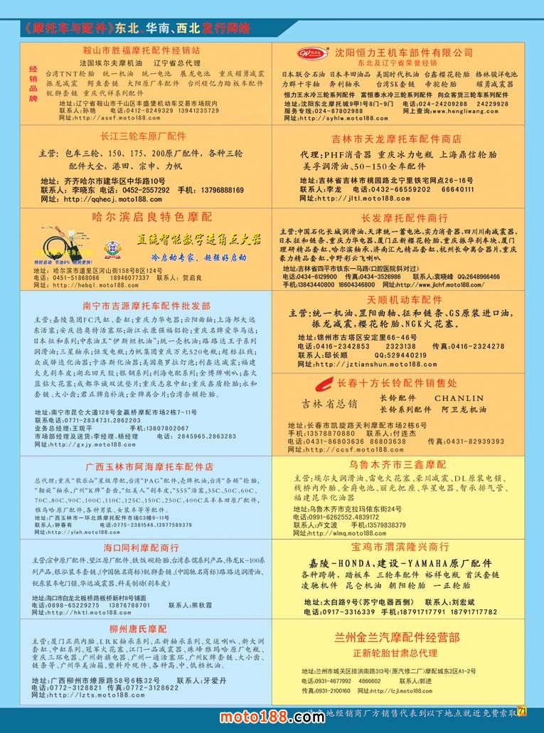 今年我們還針對(duì)一批以電動(dòng)車配件和三輪車制造為主的地區(qū)和市場(chǎng)增加了雜志的發(fā)行和投放。比如無錫南方國(guó)際機(jī)電城是以電動(dòng)車配件為主的市場(chǎng),我們新設(shè)了發(fā)行點(diǎn);比如豐縣是全國(guó)最大的三輪車生產(chǎn)基地,我們除進(jìn)行雜志的投放外,還積極籌資成立辦事機(jī)構(gòu);類似如天津電動(dòng)車配件城、偃師燃油三輪車配件一條街都將納入到我們的發(fā)行計(jì)劃之中。從今年第九期及本期雜志之后,我們近期計(jì)劃增加10個(gè)版的三輪車內(nèi)容。將三輪車行業(yè)信息及時(shí)告知讀者,供大家在經(jīng)營(yíng)之中參考。這類行業(yè)相對(duì)于摩托車行業(yè)屬于新興的,與摩托車行業(yè)有很近的血緣關(guān)系,也可以說是摩托車行業(yè)派伸出來的,如果去摩托車配件市場(chǎng),大家往往可以看到在市場(chǎng)的一角總有一些三輪車企業(yè),停在露天待銷售的車輛,構(gòu)成了市場(chǎng)里新的風(fēng)景線。東隅已失,桑榆未晚。