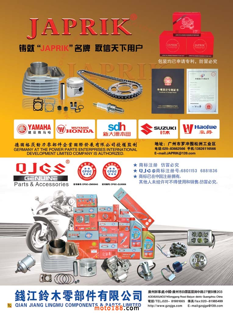 全摩會(huì)還有2個(gè)多月就在廣州召開(kāi)了,這次會(huì)上我們將奉獻(xiàn)給大家的是第12次升級(jí)的《中國(guó)摩托車配件生產(chǎn)企業(yè)大全》在這本書(shū)中。我們新增了目錄銷售排名前10-20名的摩托車整車生產(chǎn)企業(yè),二輪電動(dòng)車生產(chǎn)企業(yè)、燃油和電動(dòng)三輪生產(chǎn)企業(yè)的名錄,方便大家在增加經(jīng)營(yíng)的同時(shí),有所選擇和參考。《華南市場(chǎng)指南》含廣東和海南兩省市場(chǎng)經(jīng)銷商戶的資料,其中的廣州白云區(qū)羅沖圍一帶的市場(chǎng)是用中英文雙語(yǔ)編排,方便外商的閱讀;其余例行的十一期雜志和外貿(mào)報(bào)紙;另外還有部分華東和西北地區(qū)的新的市場(chǎng)指南(已經(jīng)在南京和西安會(huì)議首發(fā))。如果有興趣從事新能源汽車業(yè)務(wù)的企業(yè)也可拿到《新能源車》雜志。這是我們新出的雜志,具體可去moto189網(wǎng)站上瀏覽到全部的內(nèi)容,在此不多贅述。記住廣州再見(jiàn),帶上你的名片到1075展位領(lǐng)書(shū)去!