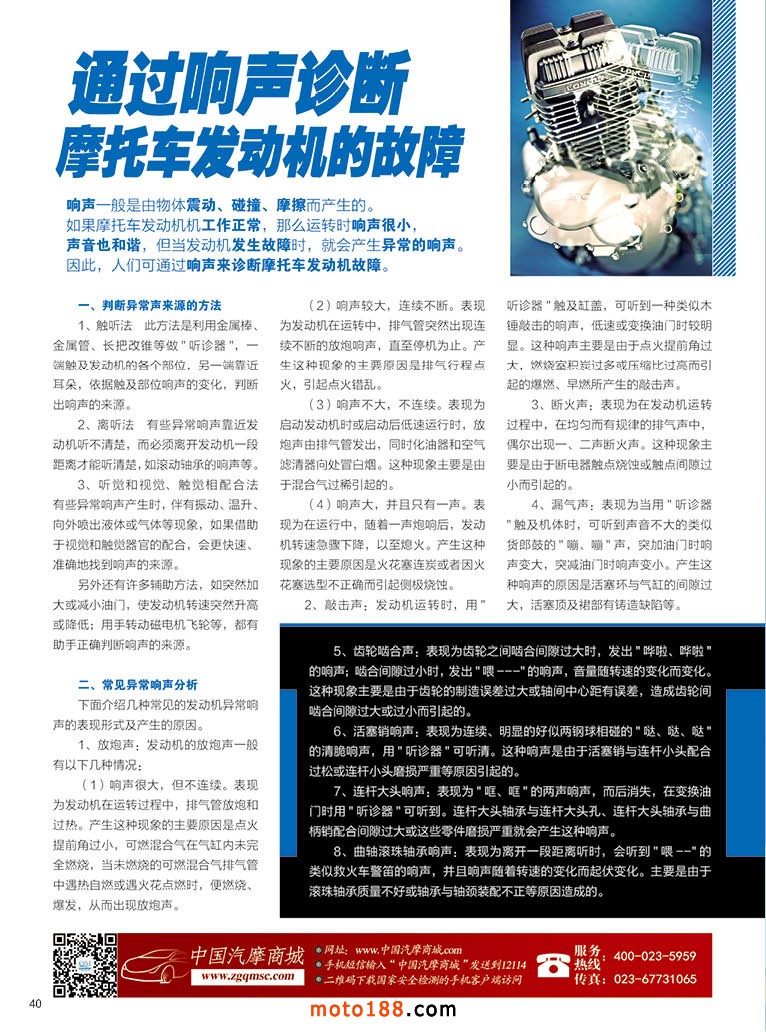 內(nèi)40 通過(guò)響聲診斷摩托車發(fā)動(dòng)機(jī)的故障