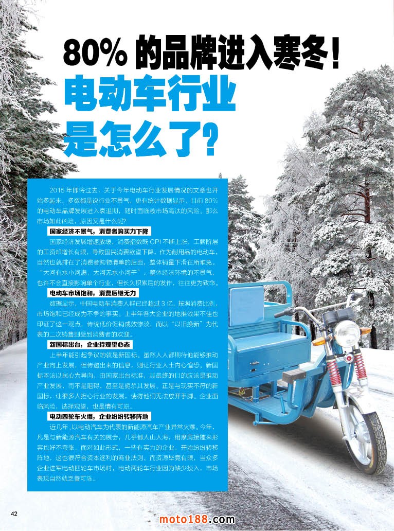 2016年的雜志在目前大環(huán)境下,將保持穩(wěn)健的發(fā)展思路,進(jìn)一步細(xì)化市場(chǎng),提升服務(wù)。同時(shí)鞏固和維護(hù)好現(xiàn)有的市場(chǎng)。加強(qiáng)在電動(dòng)車(三輪車、四輪車)宣傳和推廣力度,做好周邊市場(chǎng)的開拓工作,貼近市場(chǎng)運(yùn)作,做好服務(wù)工作。傳統(tǒng)行業(yè)正遇上互聯(lián)網(wǎng)行業(yè)的跨界打劫,但是作為我們現(xiàn)在所從事的傳統(tǒng)產(chǎn)業(yè)同時(shí)還有一定的技術(shù)含量和要求的配件,受到的沖擊要少的多,但是我們要時(shí)時(shí)居安思危。