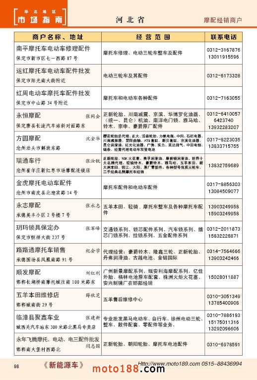 中國(guó)摩配市場(chǎng)從上世紀(jì)九十年代開始經(jīng)過(guò)高速度的發(fā)展,正逐步減速,摩托車行業(yè)也漸呈式微,與之緊密相關(guān)的后市場(chǎng)的配件與維修也呈逐步下滑之勢(shì),取代摩托車的在發(fā)達(dá)地區(qū)是汽車,欠發(fā)達(dá)地區(qū)是電動(dòng)兩輪、電動(dòng)三輪,甚至電動(dòng)四輪車,隨著經(jīng)濟(jì)的發(fā)展,出行的多樣化,也給了消費(fèi)者多重的選擇。目前現(xiàn)有的摩托車及配件市場(chǎng),也不再是以純摩托車為主體,有的市場(chǎng)電動(dòng)車取代了摩托車,有的商店也是混合經(jīng)營(yíng),這些變化在《市場(chǎng)指南》里面都有所反應(yīng)。這次《北方指南》一些小市場(chǎng)不再單列,并入到相應(yīng)的省份中去;以前去市場(chǎng)的公交線路,書中也不再列入,因?yàn)楝F(xiàn)在的地圖導(dǎo)航功能十分強(qiáng)大,既新又準(zhǔn)。