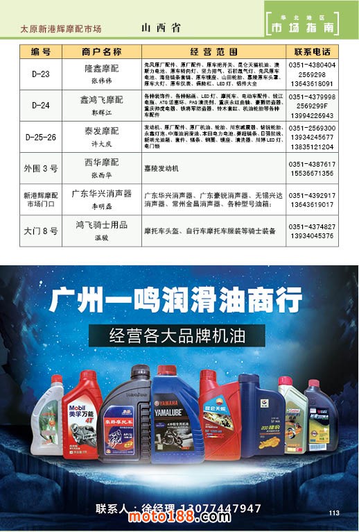 中國摩配市場從上世紀九十年代開始經過高速度的發(fā)展,正逐步減速,摩托車行業(yè)也漸呈式微,與之緊密相關的后市場的配件與維修也呈逐步下滑之勢,取代摩托車的在發(fā)達地區(qū)是汽車,欠發(fā)達地區(qū)是電動兩輪、電動三輪,甚至電動四輪車,隨著經濟的發(fā)展,出行的多樣化,也給了消費者多重的選擇。目前現(xiàn)有的摩托車及配件市場,也不再是以純摩托車為主體,有的市場電動車取代了摩托車,有的商店也是混合經營,這些變化在《市場指南》里面都有所反應。這次《北方指南》一些小市場不再單列,并入到相應的省份中去;以前去市場的公交線路,書中也不再列入,因為現(xiàn)在的地圖導航功能十分強大,既新又準。